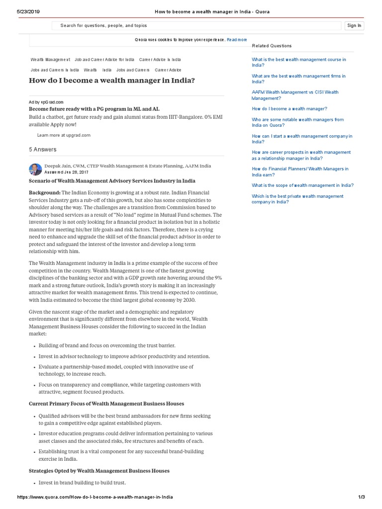 Wealth Management Job Description In India / Buy Wealth Management Associate Red Hot Career Guide 2577 Real Interview Questions Book Online At Low Prices In India Wealth Management Associate Red Hot Career Guide 2577 Real Interview Questions Reviews Ratings / How well a management professional will earn depends upon factors like his/her area of specialization, course pursued (mba degree is most valuable and assures the highest.. Apply for the latest business management jobs on freshersworld.com. Realize what you've been working for. Thanks for timely help in extending my visa…! Private wealth managers working in a private setting will offer two types of services: How well a management professional will earn depends upon factors like his/her area of specialization, course pursued (mba degree is most valuable and assures the highest.