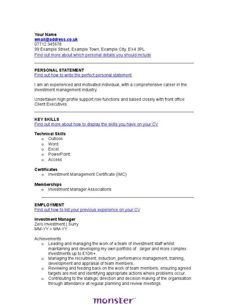 You might also like to take a look at our more generic cv templates and. Take a look at the following finance cv templates to get an idea of style and structure before beginning your own document. Aria black 27 colmore row birmingham, england b3. Examples of finance manager responsibilities. Proven track record in optimizing cash flow, reducing costs, driving efficiency, and integrity in financial by analyzing and resolving complex accounting, reporting, and regulatory issues. Skills emphasized on an example finance manager resume include comprehensive knowledge and practical experience in the treasury, accounting and finance. Each exam is covered by a course outline. In this article, we explain the variety of skills needed to be a successful finance manager. Free finance manager resume 2. Minimum of bachelor's degree in business administration, accounting or related field; Livecareer's cv directory contains real cv created by subscribers using livecareer's cv builder. Dedicated financial manager with over 20 years of quantifiable achievement. If you think that you are qualified to be a financial manager, then use our resume samples as your reference in creating your sample resume.